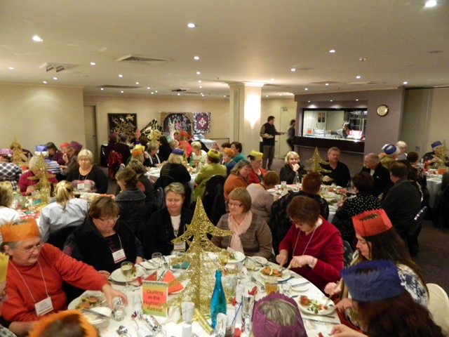 We had 2 dinner events as part of Quilting in the Highlands Retreat. On the Saturday Night we had a special Christmas in July at the Mittagong RSL. The room looked great and everyone had a great time. It was a good time for our students to relax, and just enjoy themselves. We introduced all our teachers to the students and had a question to ask all of them which provide everyone with a short insight into just who our teachers were. We also had some great giveaways thanks to our Quilting in the Highlands Sponsors.